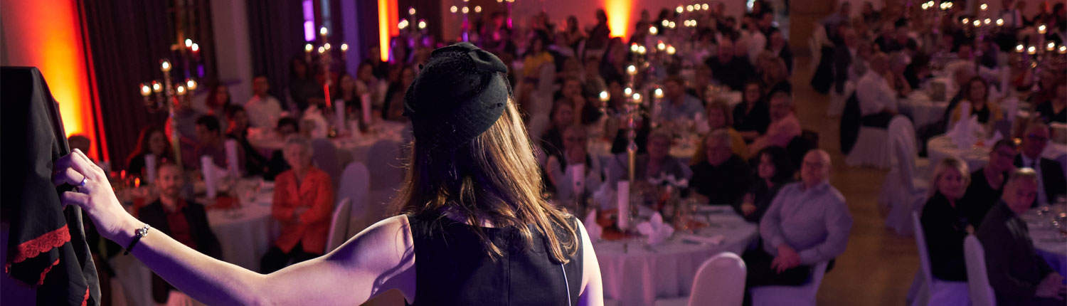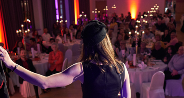 Sie pustet mit ihrem Witz allen Staub von trockenen Veranstaltungen und verleiht Ihrer Privatfeier den ganz besonderen Glanz.