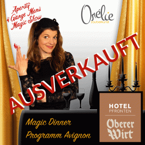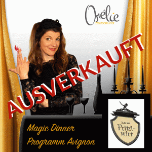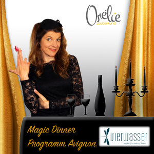 Orélie entführt Sie in die Welt der Magie und noch weiter, denn sie ist mehr als nur Zauberkünstlerin. Ihr Programm “Avignon” vereint Entertainment, Musik, und Magie und das alles mit sehr viel Humor. Sie holt den Zuschauer direkt in der ersten Minute ab und begibt sich mit ihm auf eine magische Reise. Eine Reise zu den Grenzen der Fassungslosigkeit und den Wellen des Staunens. Vorallem aber Tränen des Lachens und der Rührung finden ihren Weg an die Oberfläche, weil man sich selbst so gut wiedererkennt und mit Orélie, dieser Figur voll französischem Charme am liebsten Pferde stehlen möchte. Ihre außergewöhnlich ausgearbeiteten magischen Werke sind eingewoben in spannende Erzählungen und kuriose Handlungen. Mit einer magischen Bewegung lässt sie die Erdanziehungskraft blass aussehen. Auch geheime Gedanken sind vor Orélie nicht sicher, wenn sie ihre lang und hart trainierten mentalen Fähigkeiten nutzt um herauszufinden, was ihr Gegenüber denkt. Dinge werden unsichtbar und verschwinden, um dann an sehr ungewöhnlichen Orten wieder aufzutauchen. Das ist Zauberkunst in einem ganz anderen Kontext. Für Erwachsene, für Träumer, für Realisten – und für die, die ihren magischen Blick aufs Leben neu justieren wollen.